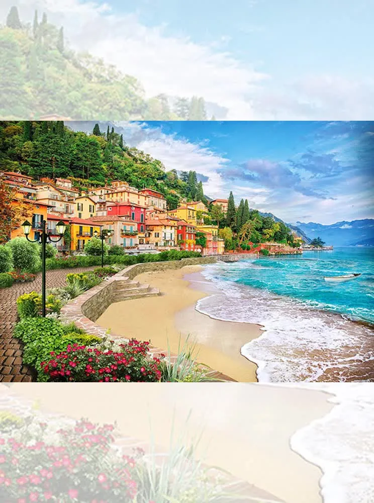تابلو فرش چاپی طرح سواحل دریاچه کومو